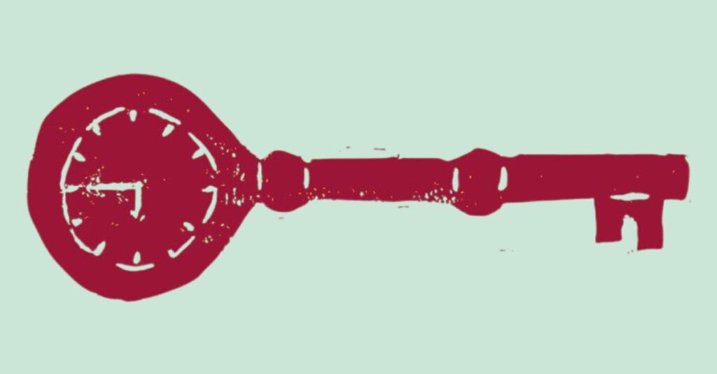 Men da jeg nåede frem til, at jeg ville bygge bogen op omkring de ti nøgler, var det jo helt oplagt, at illustrationen skulle være af en tidsnøgle. Og da jeg samtidig længe havde drømt om at tage et kursus i linoleumstryk, var det oplagt at forsøge selv at lave en tidsnøgle i netop linoleumstryk. Jeg tegnede først nøglen ud fra nogle billeder på Pinterest og overførte det derefter til linoleumstrykket. Jeg var ærligt meget i tvivl, om mine evner ville række til at lave noget, der kunne bruges, men jeg må sige, at jeg faktisk er blevet ret glad for den tidsnøgle.